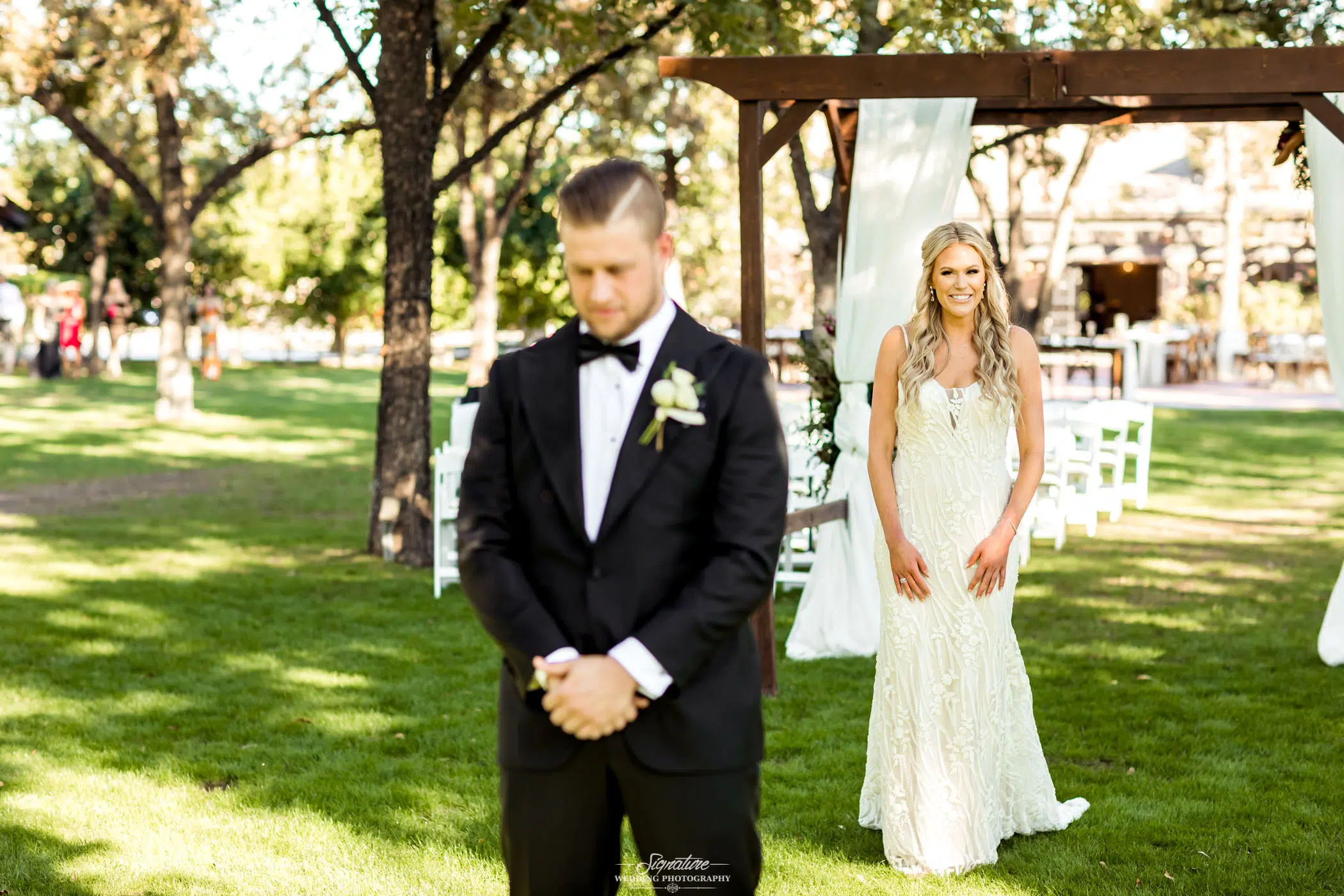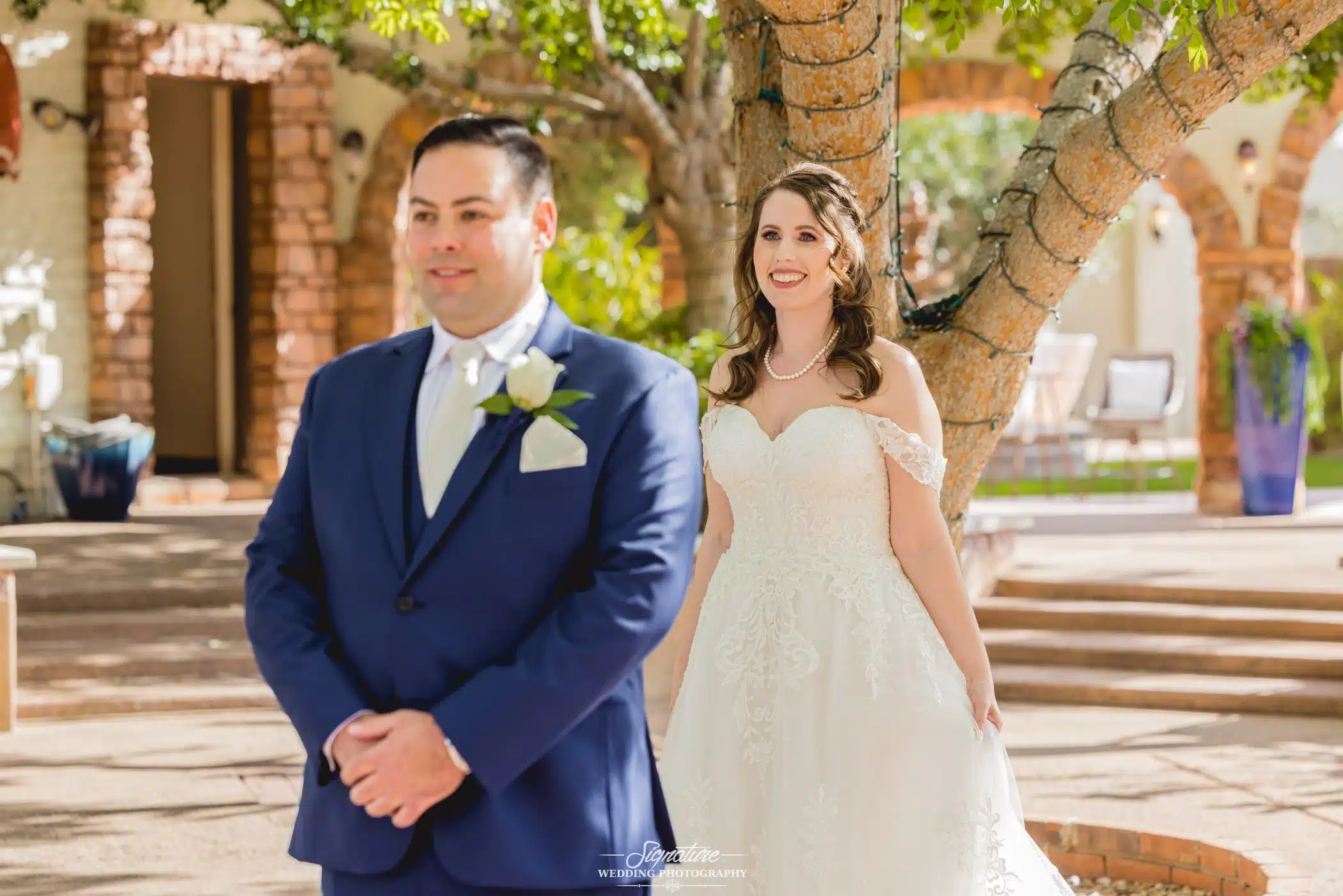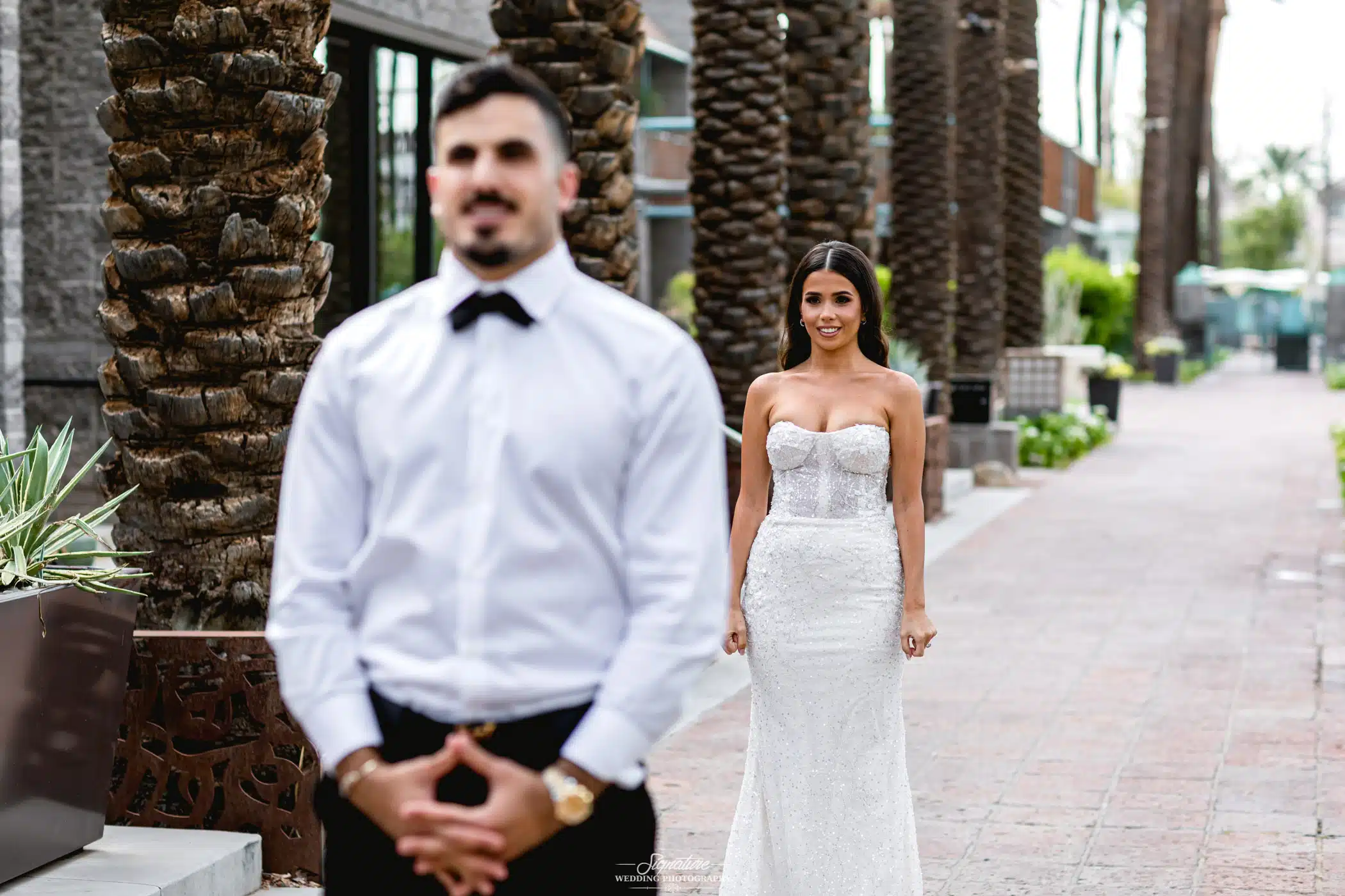 First looks are powerful moments and therefore first look photography. Sometimes a couple will opt in to see each other before the ceremony in order to have some one-on-one time. These can be emotional interactions as the couple sees one another after they’ve been apart from the night before. Both of you are 100% ready and look and feel amazing from all of the pampering and grooming. You can imagine the sparks that fly when the groom turns around to see his wife be standing there completely glammed up. Sometimes it’s all happiness, sometimes tears hit and the emotional connection is unavoidable.